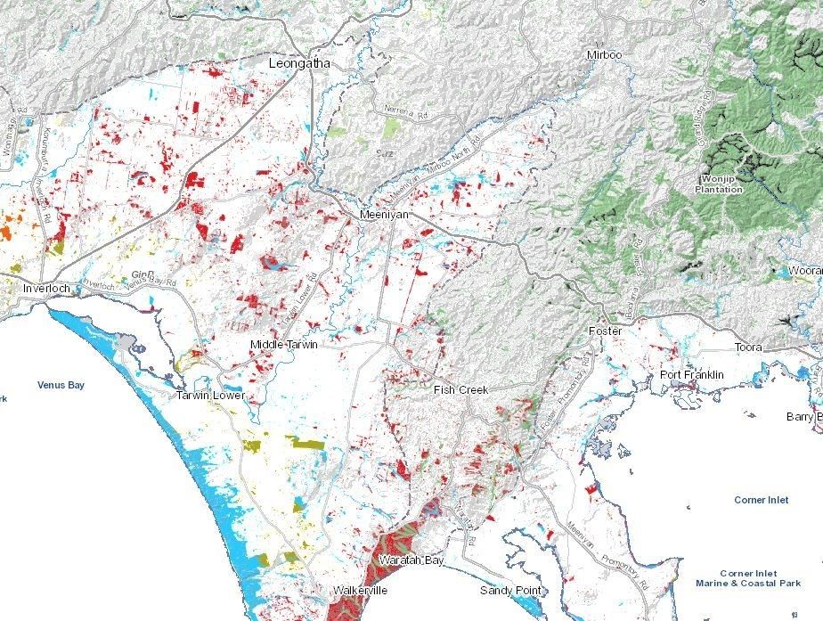 There are areas of Bog gum Heathlands around the Stony Creek Racecourse, at Tarwin along the rail trail and south of the SG Highway towards Tarwin Lower. Bog gum is endemic to Victoria and has a limited distribution. The shire of South Gippsland is its stronghold. The different types of vegetation are known as Ecological Vegetation Classes. These broad classifications of original vegetation help us to understand what species we need to plant when planning a vegetation replacement or restoration project. Using the right native species for the area means they have a better chance of good growth, as conditions should be right for them to flourish. Native animals have also adapted to use specific types of native vegetation for food and shelter, so replanting, protecting remnants and enhancing native vegetation gives them the best chance of thriving.